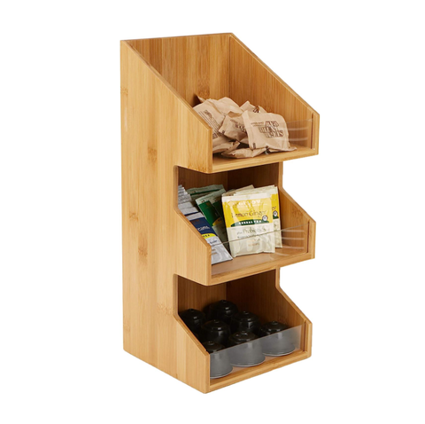 กล่องไม้3ชั้นเก็บถ้วยกาแฟ K กล่องเก็บของไม้ไผ่จัดระเบียบสถานีกาแฟชั้นวางเครื่องปรุง